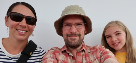 I'm not sure why the kids are looking in different directions, but we all enjoyed watching the eclipse! The first half of the show was sunny. The second half was cloudy, but I could see it without glasses once in a while.